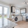 The Kitchen/Diner is a spacious social hub with French doors opening to the garden. It is thoughtfully designed with space for an American-style fridge/freezer, dishwasher, washing machine, and oven.