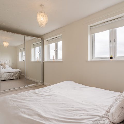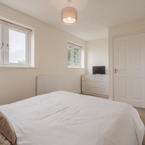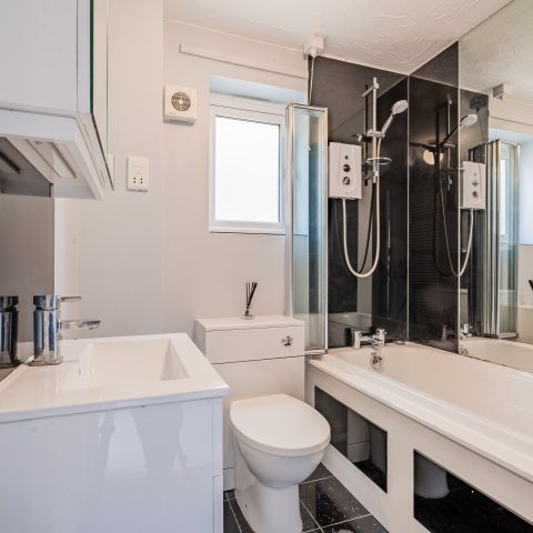 Upstairs, Two excellent-sized double bedrooms. The South-facing Master offers stunning field views and a full wall of floor to ceiling mirrored wardrobes. The second double includes a built in wardrobe and generous space for additional furniture. A modern three-piece family bathroom with a newly fitted Bristan Glee shower over bath.