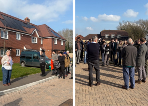The first visit of the afternoon took students to English Rural’s completed scheme at Chiddingstone Chequers. Led by Wendy and Nick, the tour explored both the development process and the practical challenges faced during delivery, from ecological considerations to design and layout choices that help new homes integrate sensitively into the village setting.