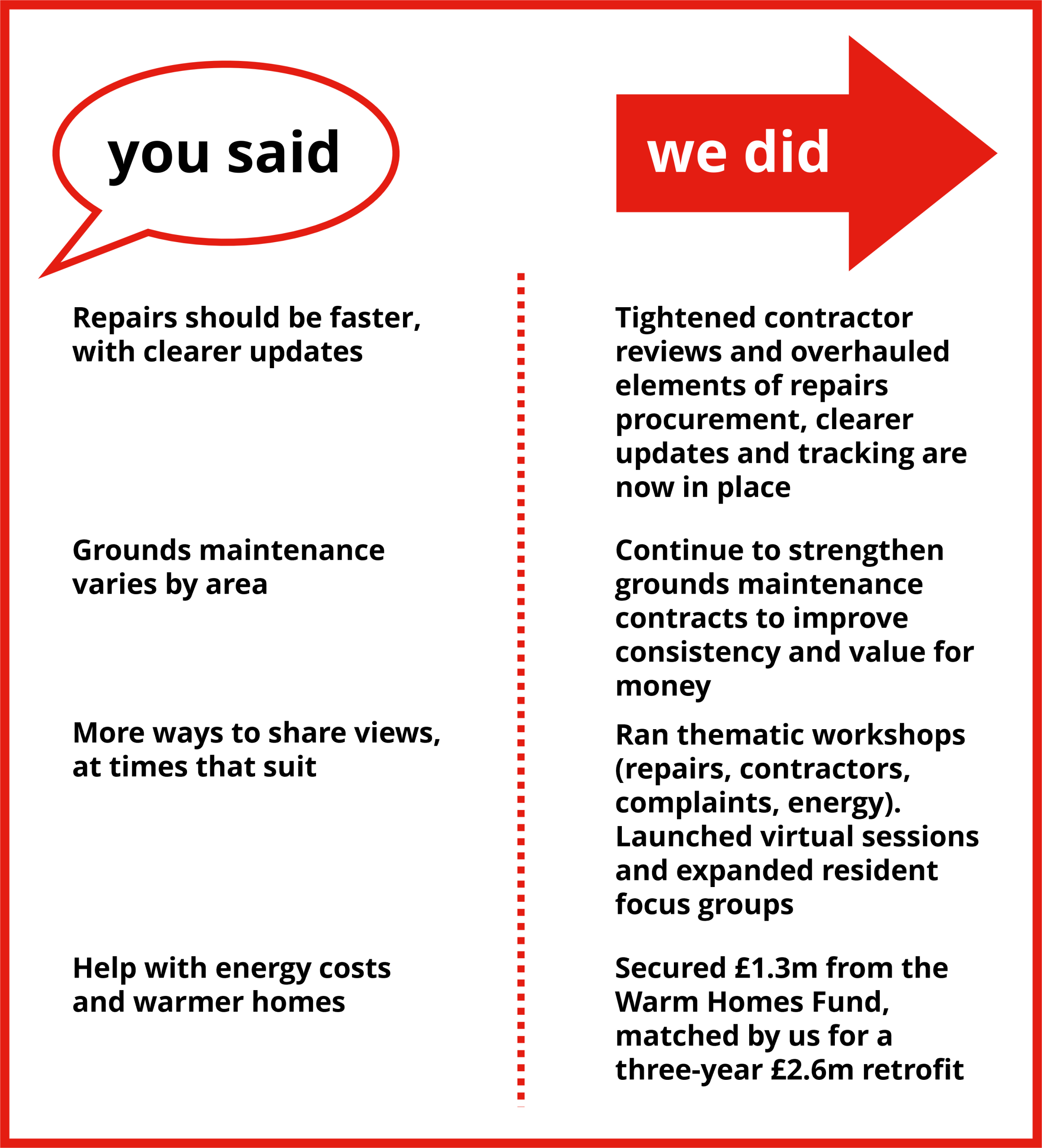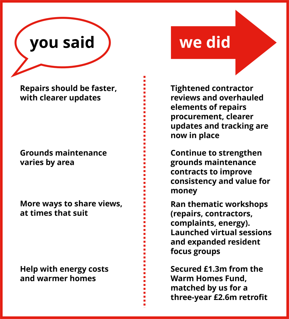 Resident feedback remains at the heart of what we do, helping us focus on the improvements that make the biggest difference to everyday life.”